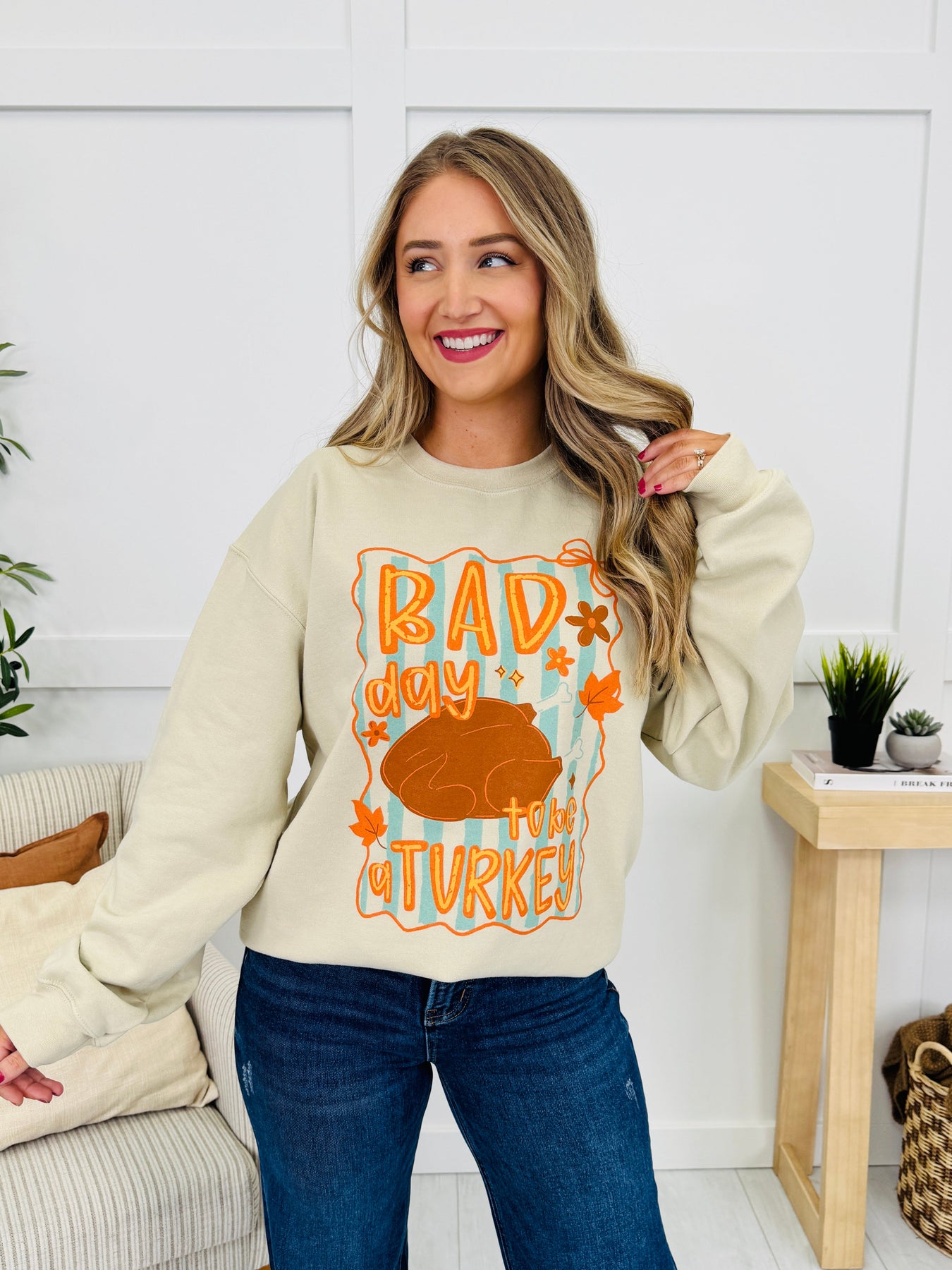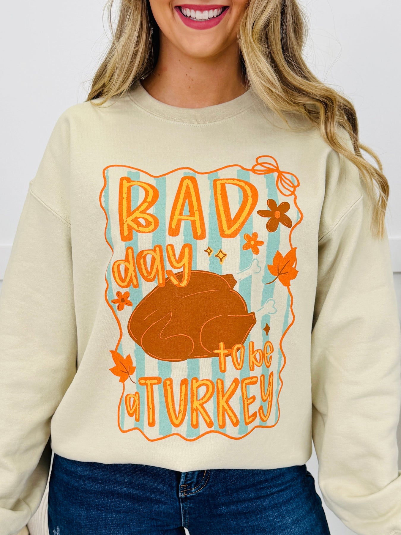 Perfect for family gatherings, Friendsgiving parties, or casual fall days, the Bad Day to Be a Turkey Sweatshirt adds a touch of fun and comfort to every Thanksgiving celebration.