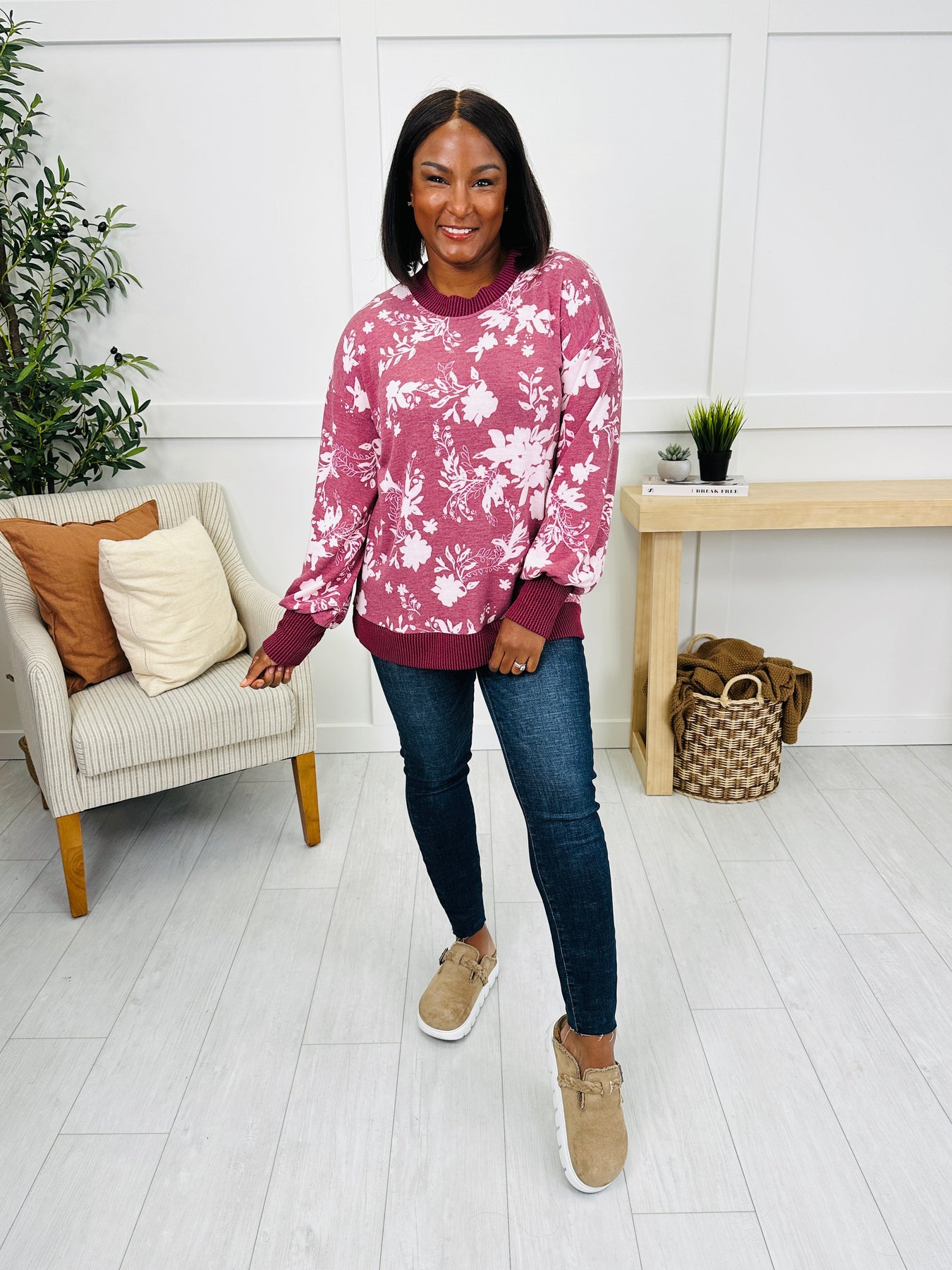 This soft, floral print top combines comfort and style with its textured neckline and cuffs for a cozy, fitted feel. The pretty flowers in soft tones create a feminine touch, making it perfect for layering or wearing on its own. With its relaxed fit, this piece is sure to be a go-to for effortless, everyday wear.