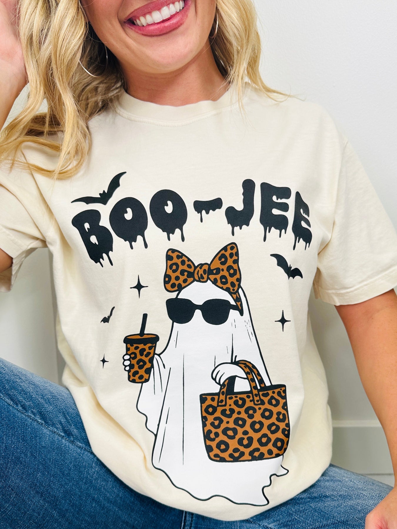Spooky but make it boujee! Our Boo-Jee Graphic Tee is the perfect mix of fun and festive with its chic ghost design rocking leopard accessories, iced coffee, and big shades. Screen printed in-house on a premium Comfort Colors tee, this shirt is soft, durable, and has that lived-in feel you’ll love. With its oversized and relaxed fit, it flatters every body type and pairs perfectly with jeans or leggings. This Best Selling graphic is now available in SIX colors and it's a must-have for your Halloween wardrobe.
