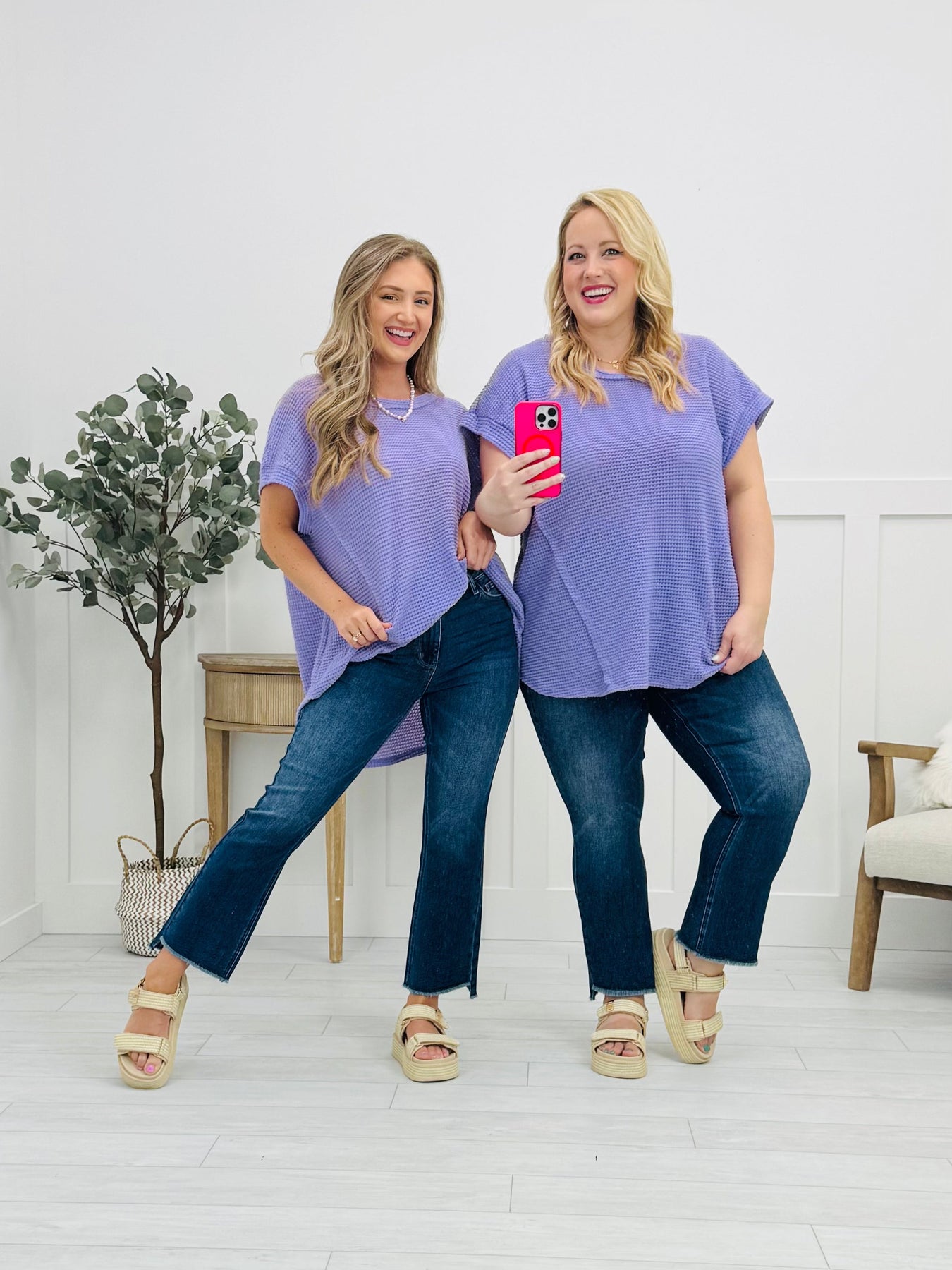 With its airy top and jeans you'll be feeling comfy, cute, and totally carefree.