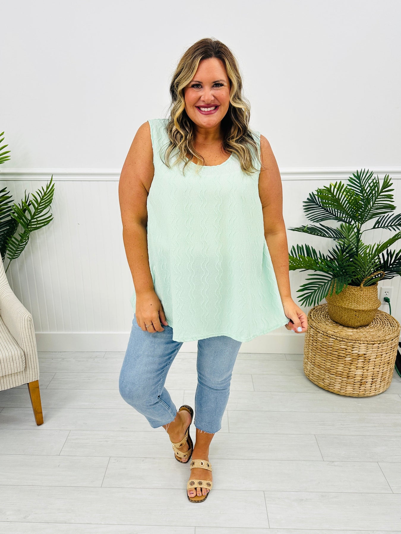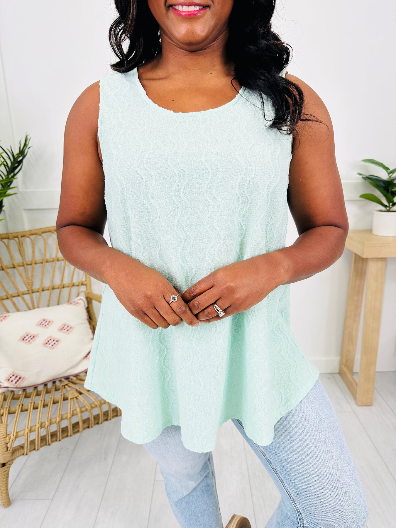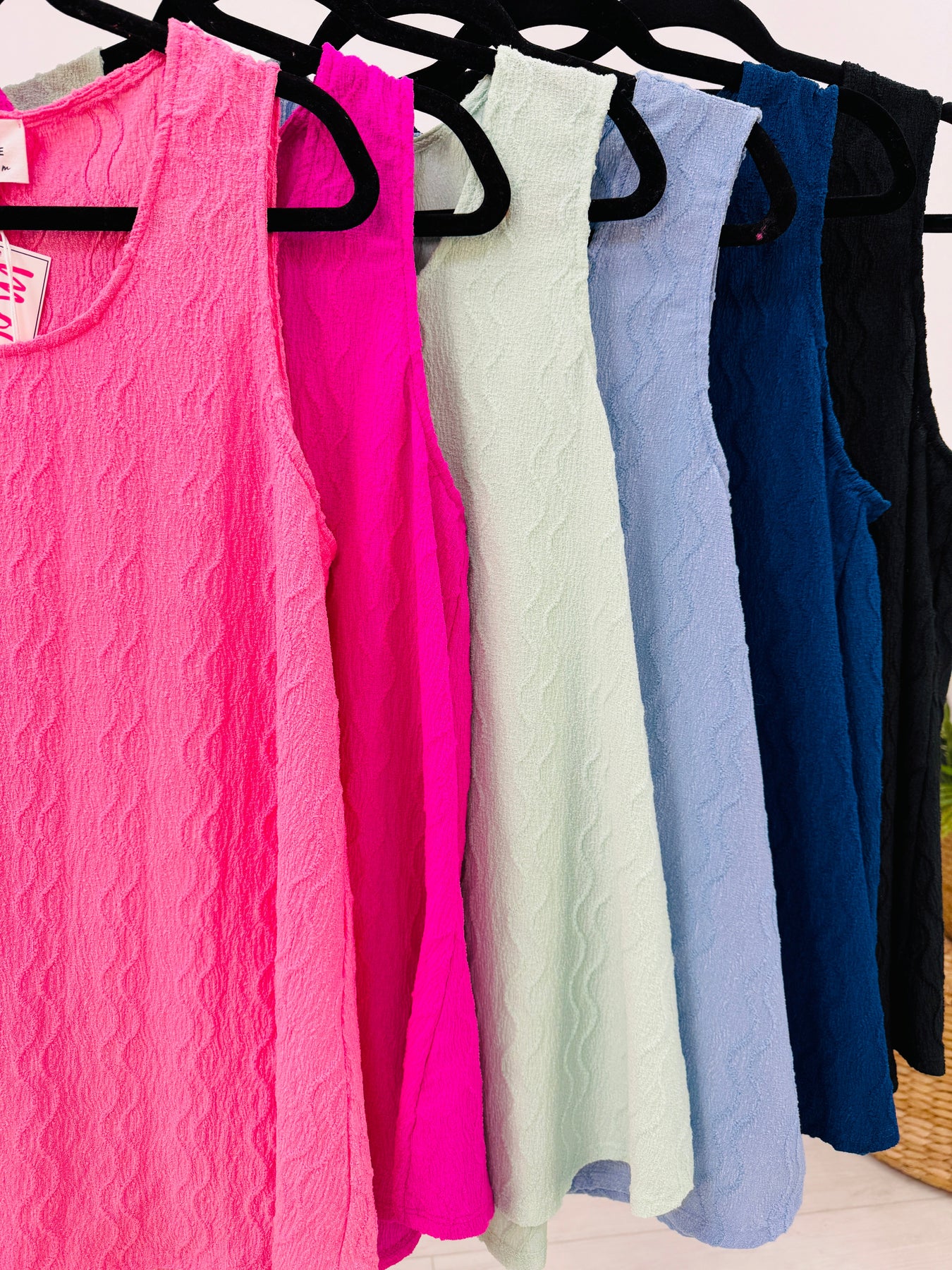 This adorable sleeveless top is an easy pick for effortless style. Featuring a soft, wavy textured fabric and a relaxed silhouette, it flows beautifully over your figure for a flattering fit. Plus, the scoop neckline adds a classic touch, making it perfect to wear solo or layered up.